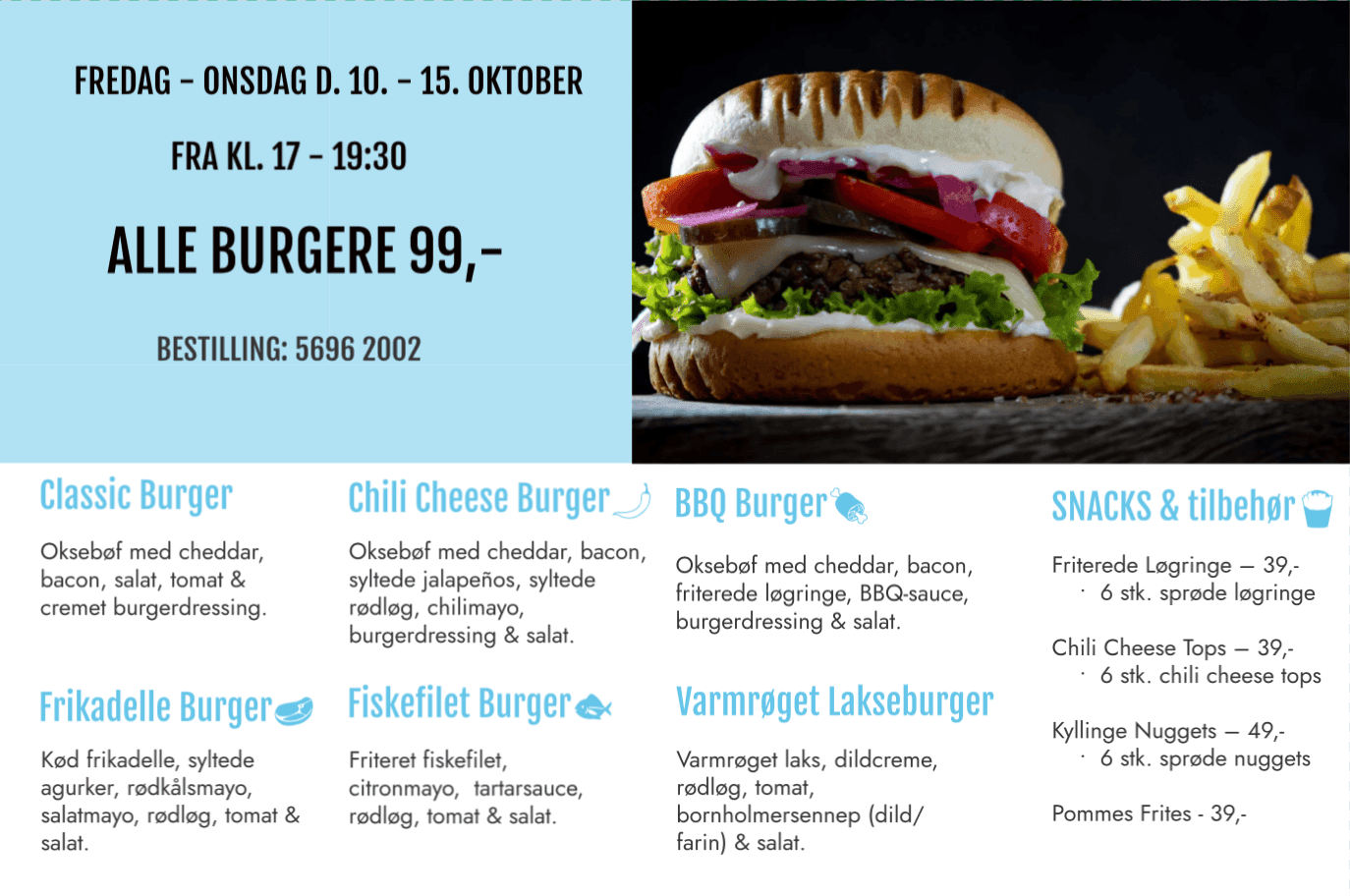 Fredag d. 10. okt. - Onsdag d. 15. okt Kl. 17:00 - 19:30 KUN 99,-